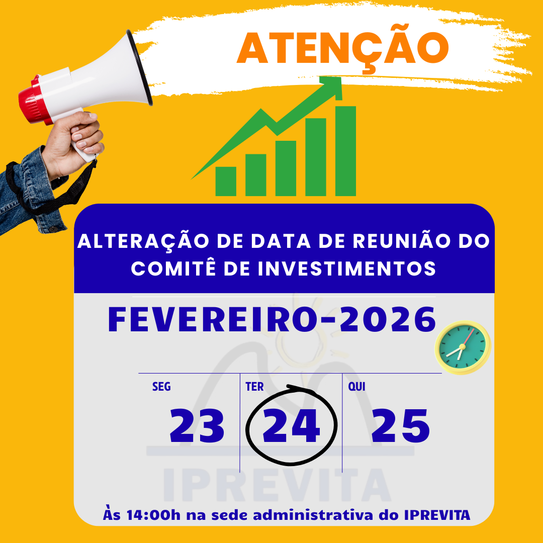 Informamos que a Reunião do Comitê de Investimentos do mês de FEVEREIRO, conforme Calendário anual de reuniões, estava agendada para o dia de 19 de fevereiro de 2026, foi reagendada para o dia 24 de FEVEREIRO de 2026, ficando mantido o horário e local.